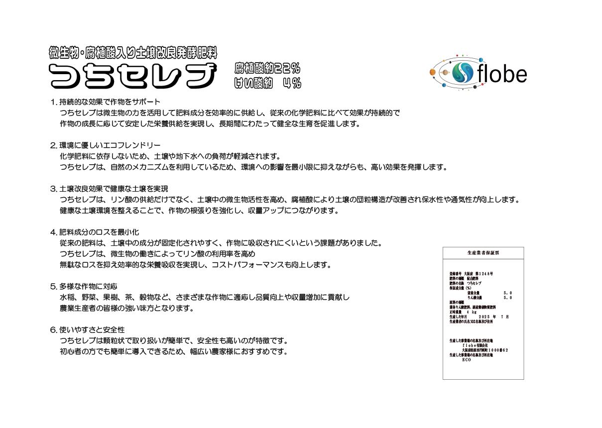 1. 微生物の力で最高の土づくり発酵ぼかし肥料「つちセレブ」は、微生物の力を活かし、豊かな土壌環境を実現します。