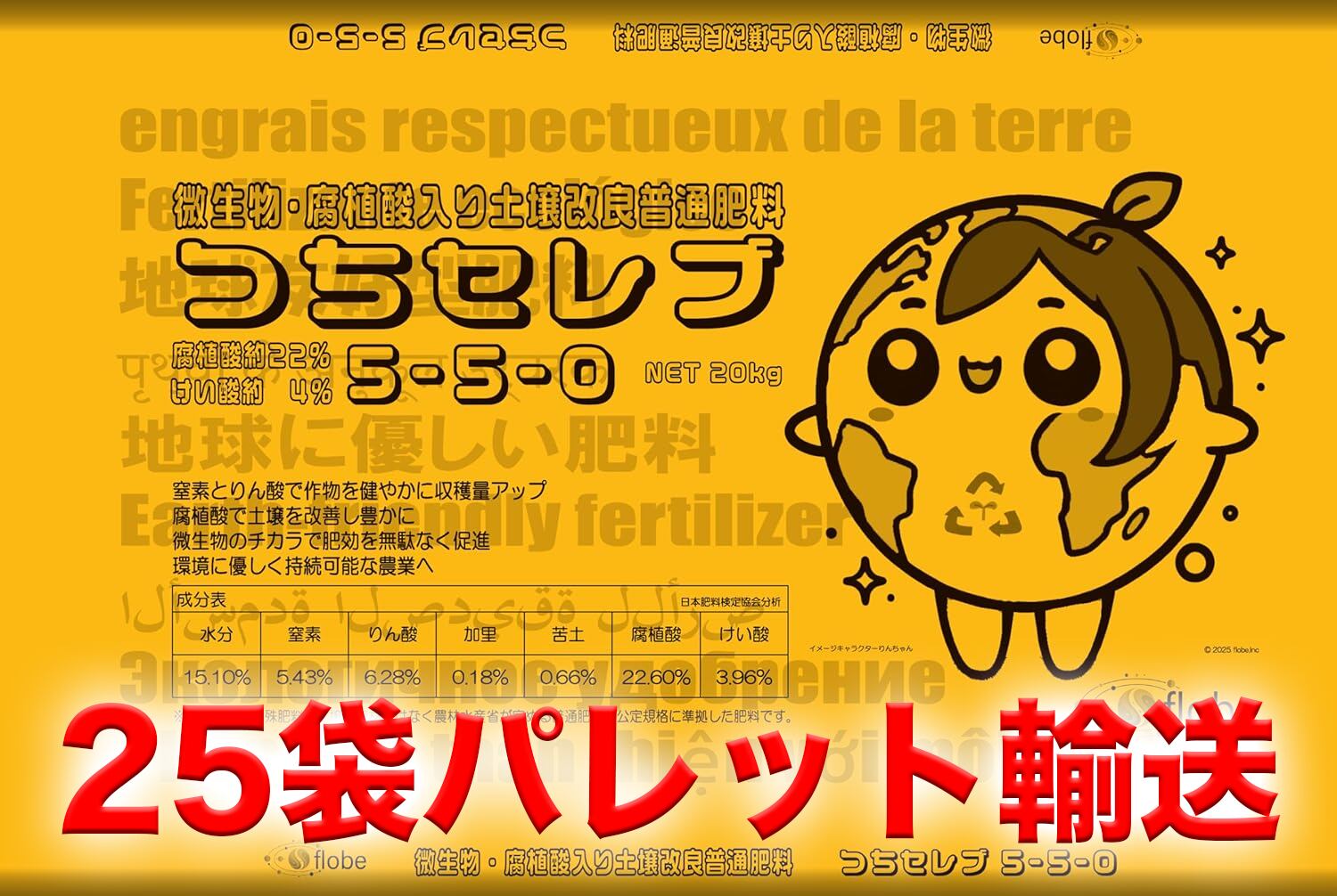まとめ買いでお得【プロの土づくりを家庭菜園で】つちセレブ5-5-0 発酵ぼかし肥料 微生物&腐植酸20%配合 野菜・園芸用(20kg×25袋)
