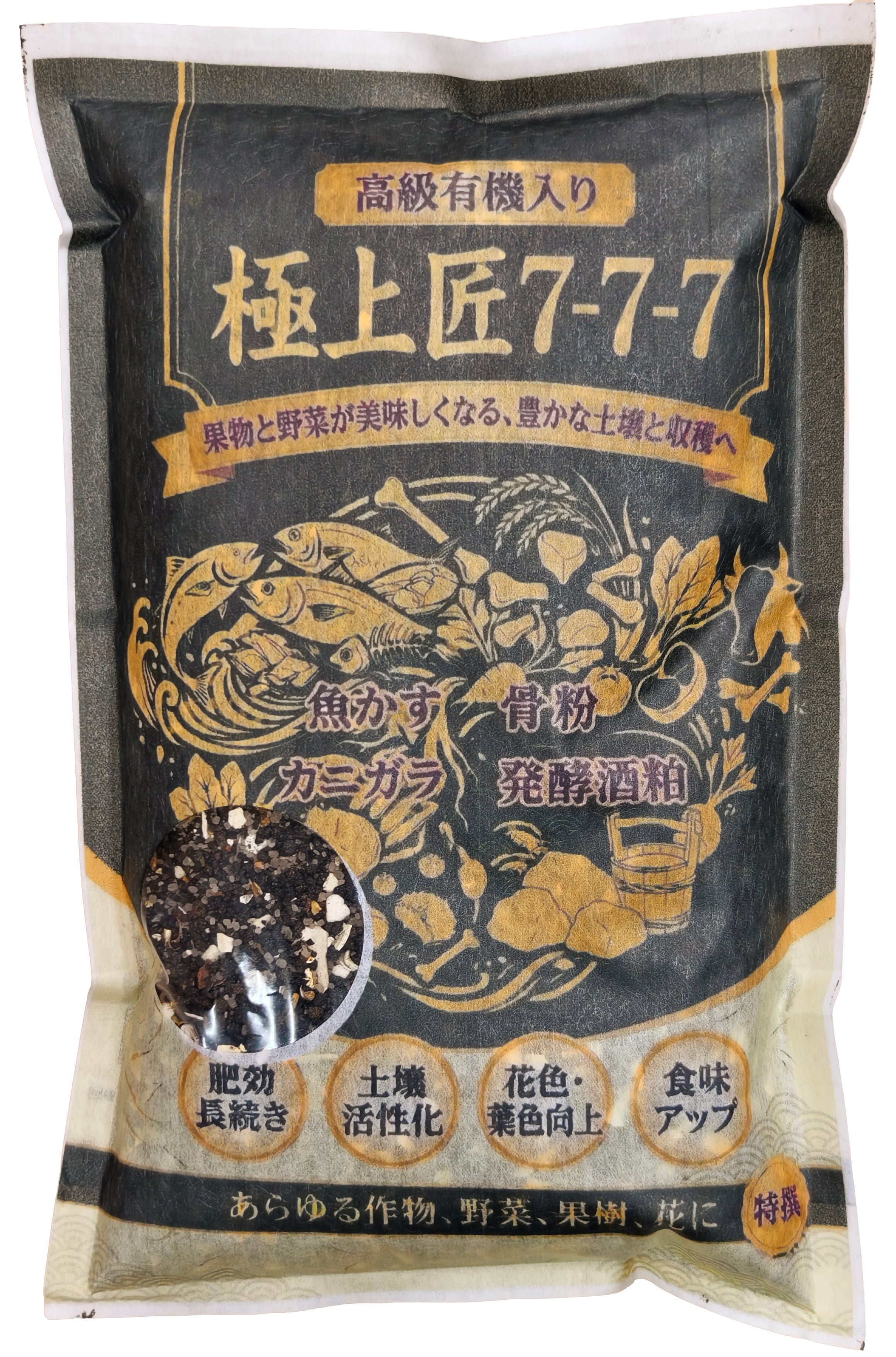 900g【プロ農家推奨】極上匠 7-7-7 プレミアム有機入り肥料 厳選素材ブレンド (魚かす カニガラ 発酵酒粕 アミノ酸 腐植酸) 美味しい野菜づくりと土壌改善に